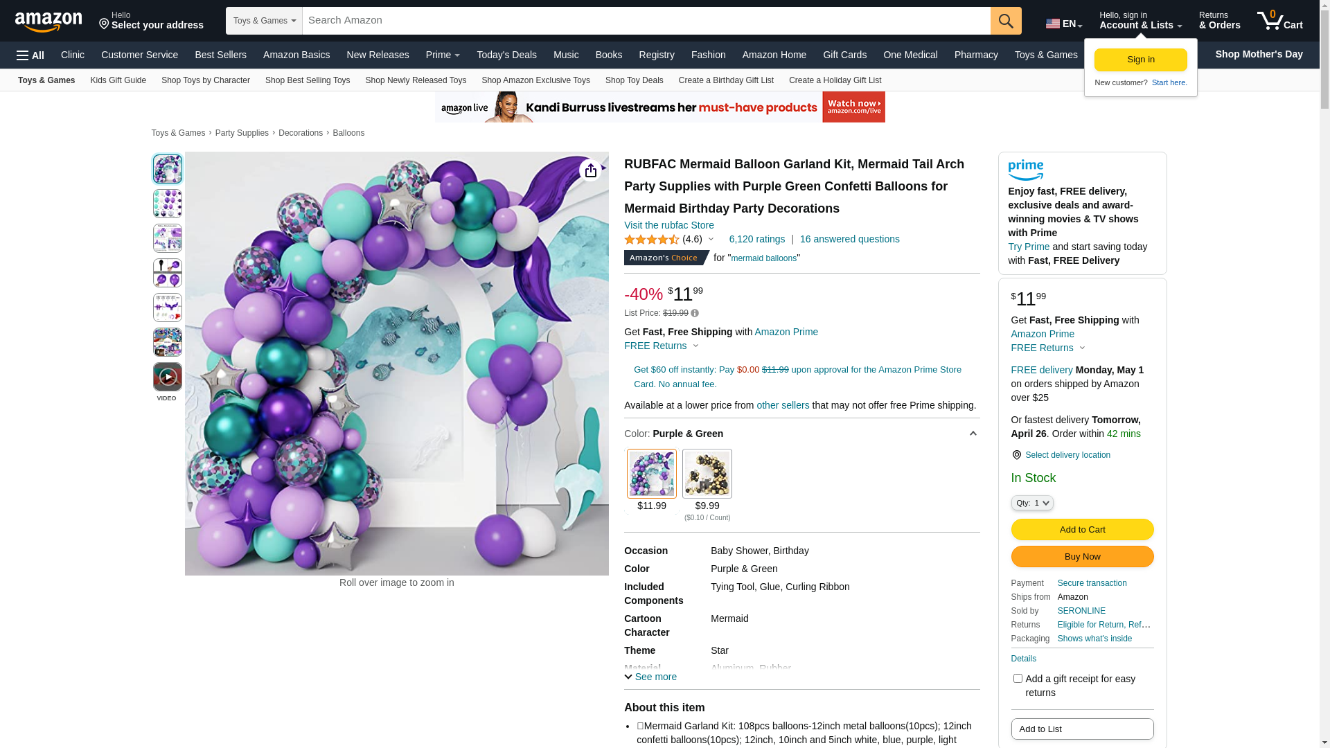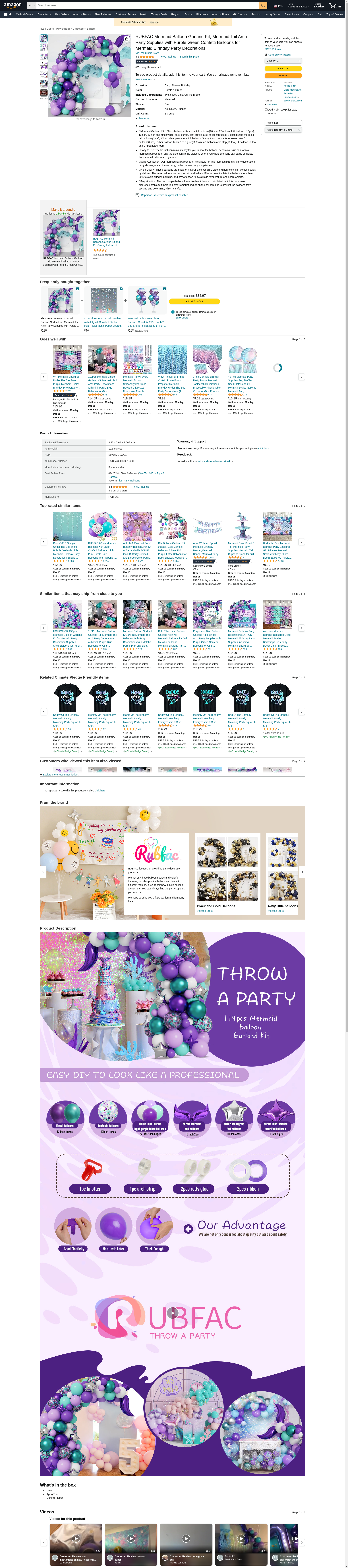 Package contains:<br> 10 x 12-inch metal balloons (5 blue and 5 purple)<br> 10 x 12-inch gold confetti balloon<br> 20 x 12-inch latex balloons (5 each in white, blue, purple, and light purple)<br> 20 x 10-inch latex balloons (5 each in white, blue, purple and light purple)<br> 40 x 5-inch latex balloons (10 each in white, blue, purple, and light purple)<br> 2 x 18-inch purple fishtails<br> 4 x 10-inch star aluminum foils (2 gold and 2 silver)<br> 2 x 8-inch purple small starfish<br> 1 x 16-foot balloon trim strip<br> 2 x 100 glue dots sheet<br> 2 rolls of ribbon (5mm*10m/roll, white, gold)<br> 1 twist tie tool<br> <br> Applications:<br> Our combination is ideal for mermaid-themed birthday parties, graduation ceremonies, weddings, baby showers, etc.<br> <br> Tips:<br> 1.Balloons are packed via weighing, so it is normal a few may have defects (the number is basically less than 1-2).<br> 2. Latex balloons filled with helium can only last for 3-4 hours. Confetti balloons have confetti and have a shorter floating time (about 1-2 hours), so it is highly recommended to fill with air. <br> 3. To prevent the balloon from sticking together, there is some talcum powder on the surface of the balloon, and it is best to fill the balloon with a gas pump.<br>