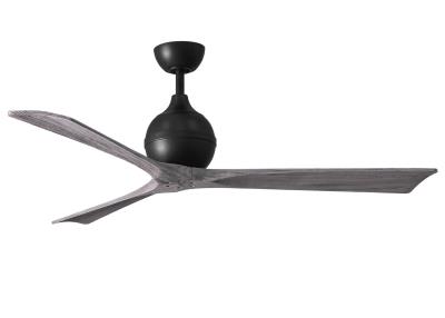 Matthews IR3-BK-BW-60 Irene Indoor/Outdoor Damp Rated Downrod Mount 60" Ceiling Fan with Remote & Wall Control, 3 Barn Wood Solid Wood Blades, Matte Black