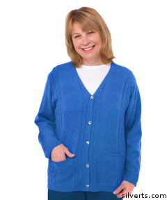 Silverts 270801105 Womens Adaptive Clothing - Acrylic Cardigan With Pockets - Extra Large, Cobalt