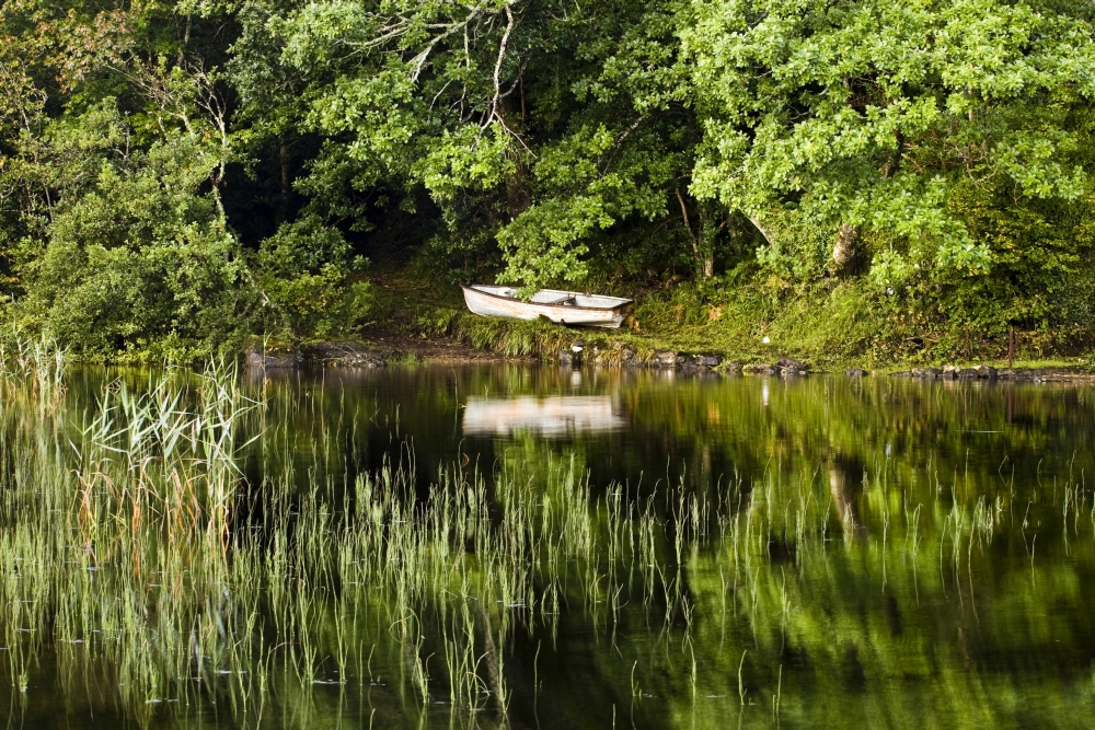 Posterazzi DPI1840717 Rowboat Moored On The Bank of A Lake - Boat Along The Shore Poster Print, 17 x 11