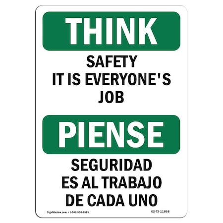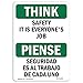 OSHA THINK Sign, Safety It Is Everyone's Job Bilingual, 14in X 10in Rigid Plastic