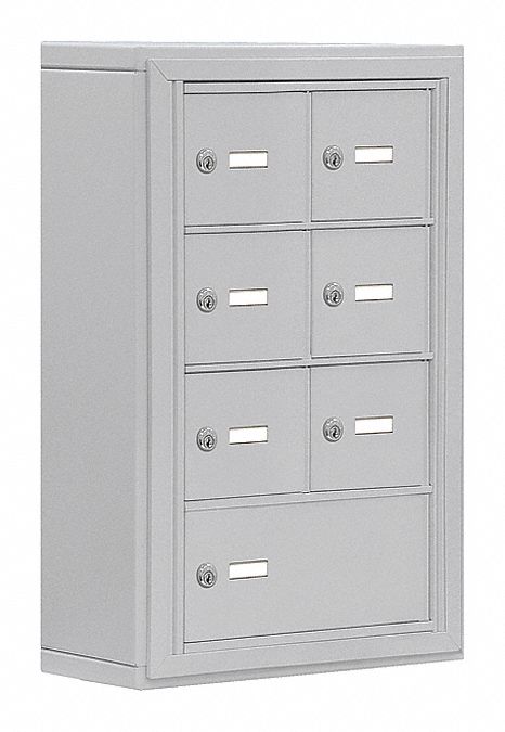 Cell Phone Storage Locker - 4 Door High Unit (5 Inch Deep Compartments) - 6 A Doors and 1 B Door - Aluminum - Surface Mounted - Master Keyed Locks