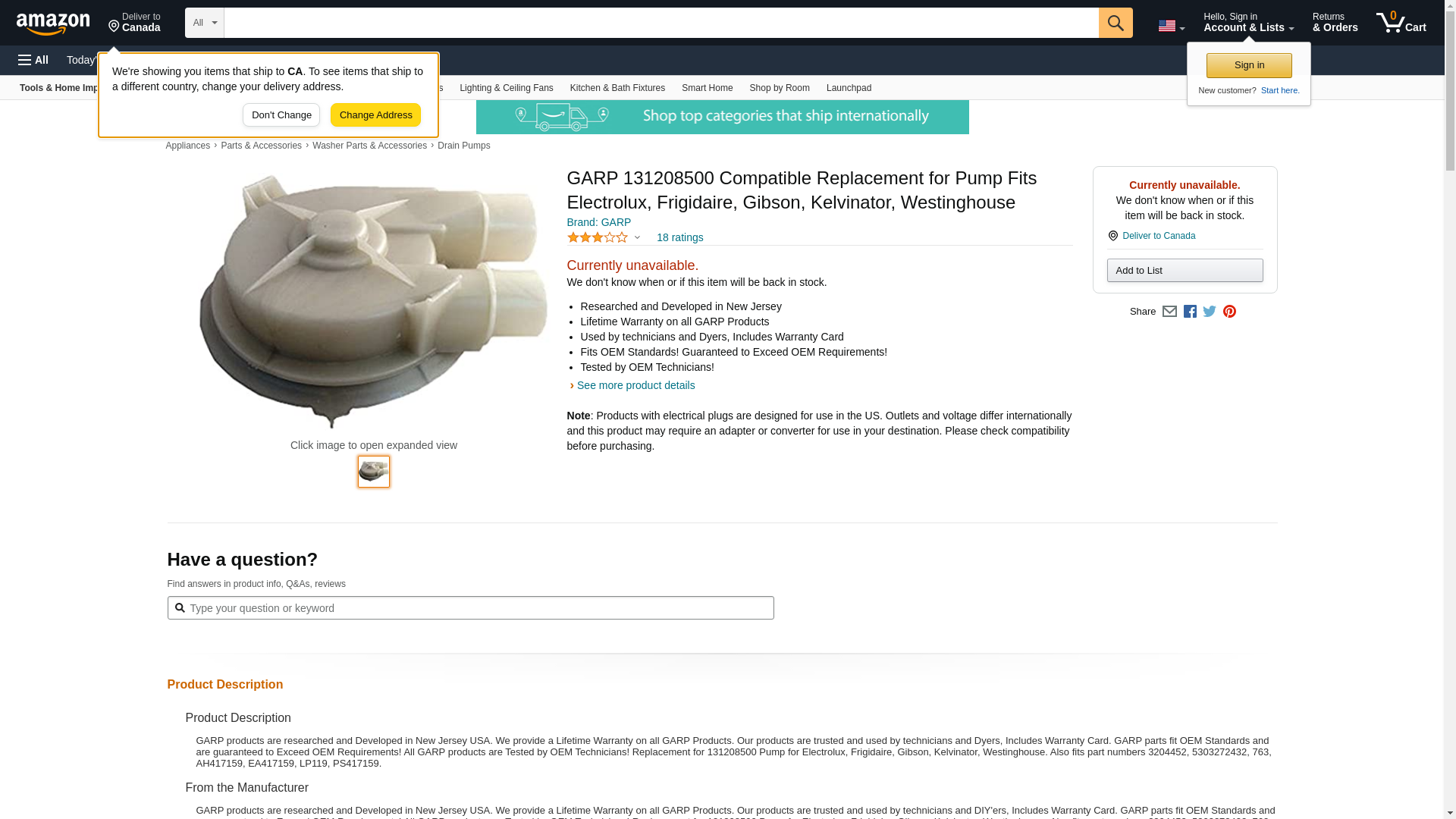 GARP 131208500 Compatible Replacement for Pump Fits Electrolux, Frigidaire, Gibson, Kelvinator, Westinghouse