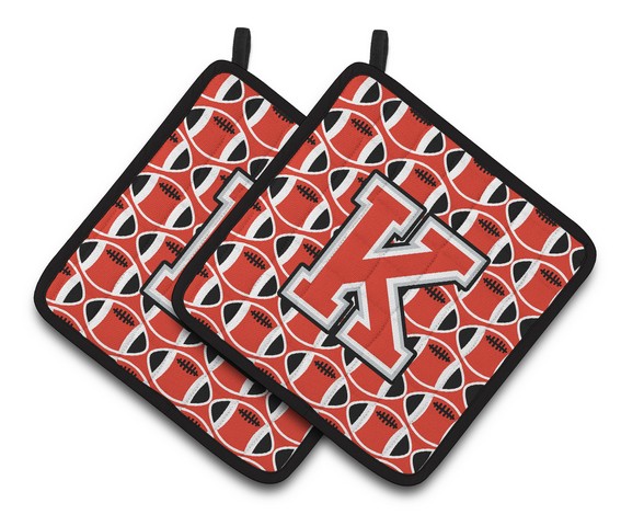 Caroline's Treasures CJ1067-KPTHD Letter K Football Scarlet and Grey Pair of Pot Holders, 7.5HX7.5W, Multicolor