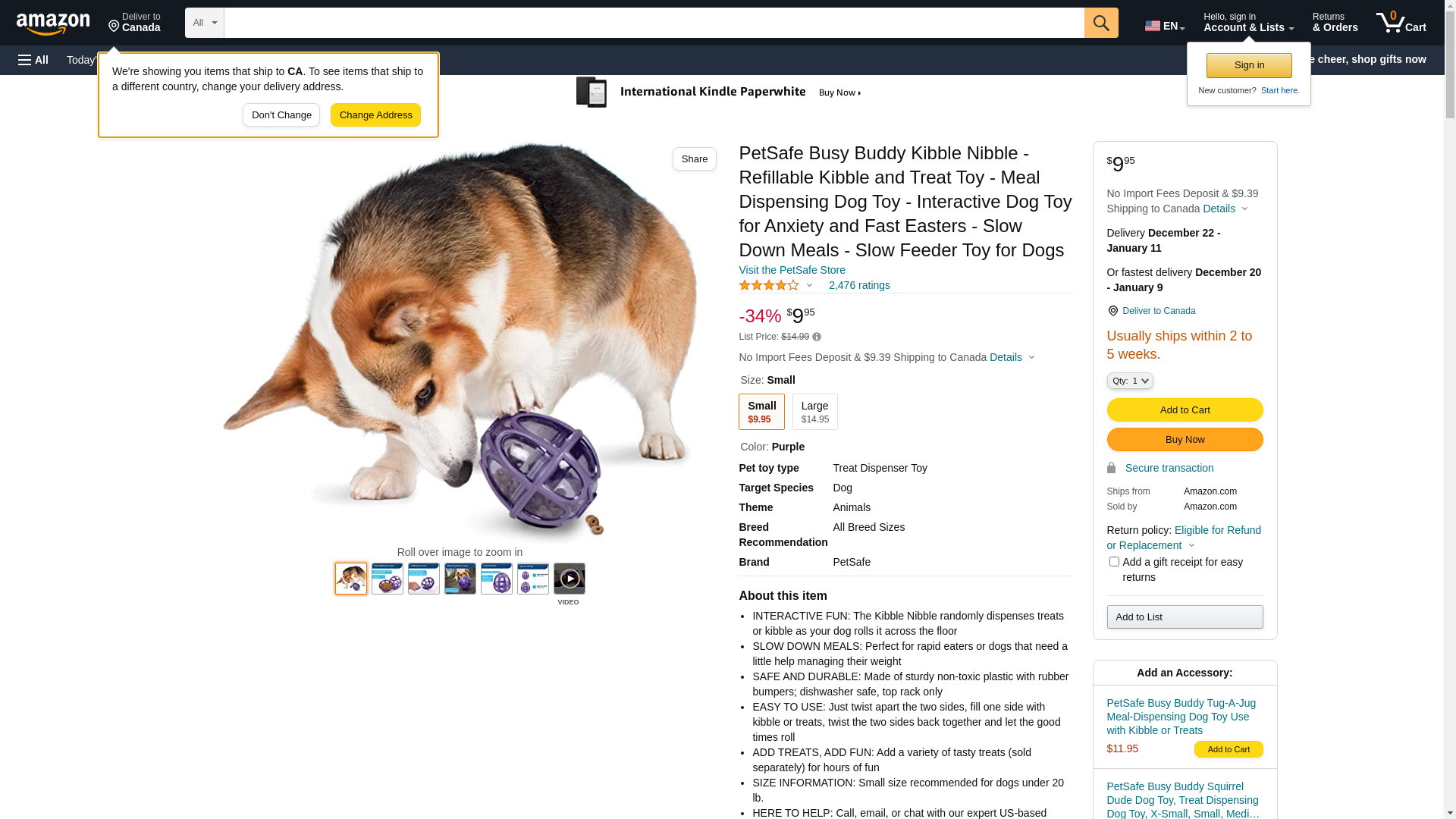 PetSafe Busy Buddy Kibble Nibble Meal Dispensing Dog Toy, Small - PTY00-13739,purple