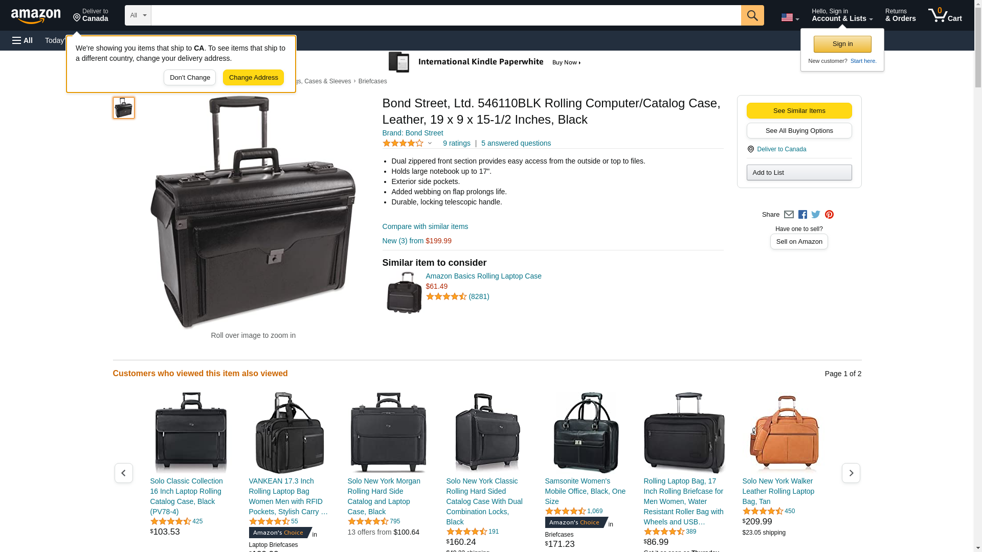 Bond Street, Ltd. Rolling Catalog/Computer Case, Leather, 19 x 9 x 15-1/2, Black