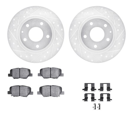 7512-80044, Rotors-Drilled and Slotted-Silver w/ 5000 Advanced Brake Pads incl. Hardware, Zinc Coat