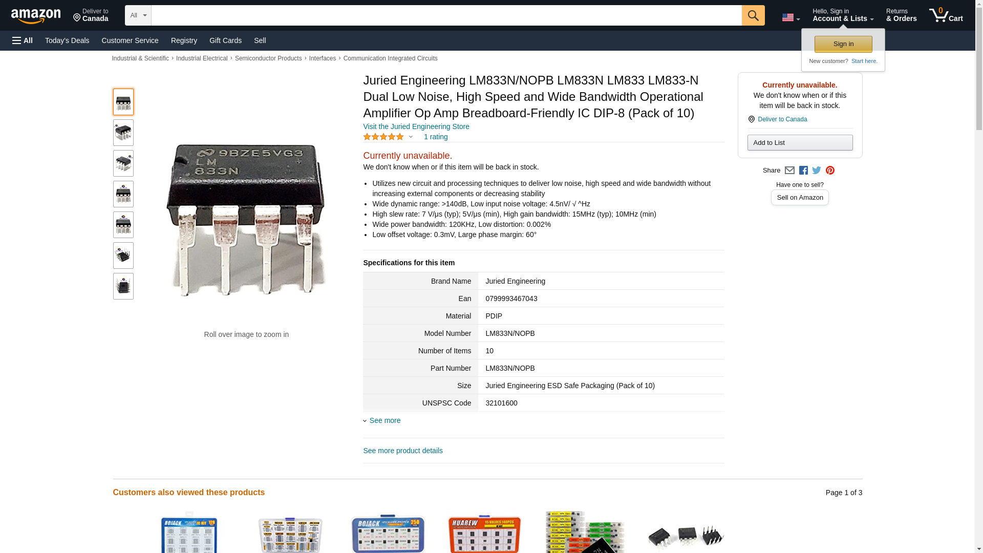 ![]() Radwell | LM833NNOPB | 1 | -2 | 1 | 1 @ $1.50 |