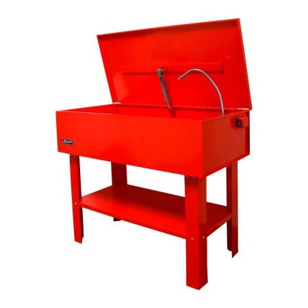 The Homak 40-Gallon Parts Washer features a big 40-gallon tank designed for cleaning larger engine parts. Ideal for professionals or DIYers. Constructed of solid steel with red powder-coat finish for years of leak-free service. Flexible nozzle lets you get solvent where you need it. Hinged lid. Fusible link lid arm prevents accidental injury in case of fire. Heavy-duty 23 Watt pump delivers 5.6 GPM flow rate. Comes with drain plug for easy cleaning. Removable work surface tray lets you work on larger parts. Tank Dimensions L x W x H in. 44 1/2 x 21 1/4 x 21 1/4, Amps 23, Flow GPH 336, Overall Dimensions L x W x H in. 22 7/8 x 46 7/8 x 36 3/4, Volts 120, Max. Capacity gal. 40, Tank Material Steel, UL Listed No, Working Capacity gal. 20. Flexible nozzle lets you get solvent where you need it Solid steel tank won't leak Hinged lid Fusible linked lid arm prevents accidental injury in case of fire Includes 23 Watt electric pump with 5.6 GPM flow rate Equipped with drain plug for easy cleaning 31.25in. x 19.75in. drying shelf cleans easily 5-ft. power cord with pump on/off switch Removable work surface tray for larger parts Uses water-based solvents only Model Number: RD00840450. Size: L. Color: Red. Age Group: Adult.