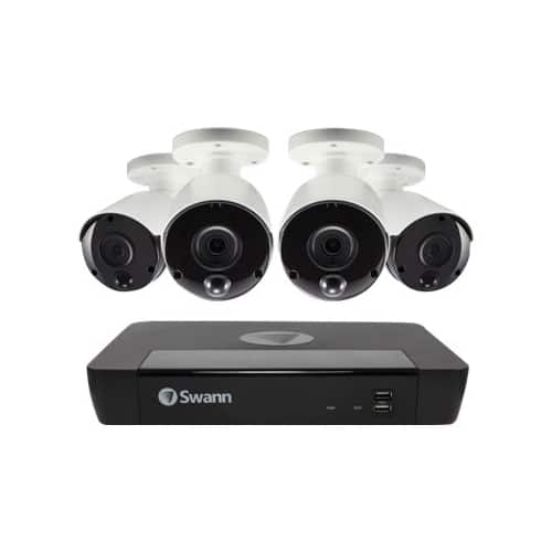 Swann 8 Channel 4 Camera Security System, PoE Wired Surveillance 4K Ultra HD NVR 2TB HDD, Audio Capture, Indoor/Outdoor, Heat & Motion Detection + Night Vision, Google Assistant + Alexa, SWNVK-885804