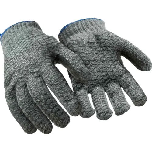 RefrigiWear Poly Cotton Knit Double Sided PVC Honeycomb Grip Work Gloves (Grey, Large) - PACK OF 12 PAIRS