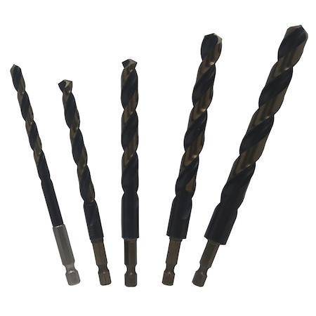 Drill America - POUKFD5HEX 5 Piece Quick Change Hex Shank Drill Bit Set in Plastic Pouc Case (1/4" - 1/2"), POU Series