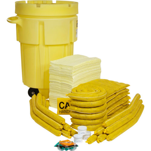 - <b>Includes</b>: (150) Absorbent Pads, (12) Small Absorbent Socks, (6) Large Absorbent Socks, (7) Absorbent Pillows, (3) 1 lb. Plug and Dike Epoxy Putty, (2) Pair Of Gloves, (1) Safety Goggles, (4) Disposal Bags and Ties, (1) Emergency Guide Book, (6) Tamper Proof Seals, (1) Overpack <b>Number of Components</b>: 196 <b>Container Type</b>: Drum <b>Color</b>: Yellow <b>Spill Control - Fluids Absorbed</b>: Chemical, Hazmat <b>Standards</b>: 29 CFR 1910.1450e