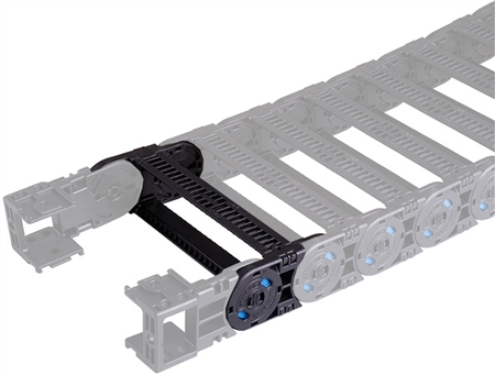 CPS ST072N.075.R200 cable carrier has a 72mm pitch length, a 75mm inner width, and a 200 bending radius. Dual hinge pin lock frame style. Sold by the link.