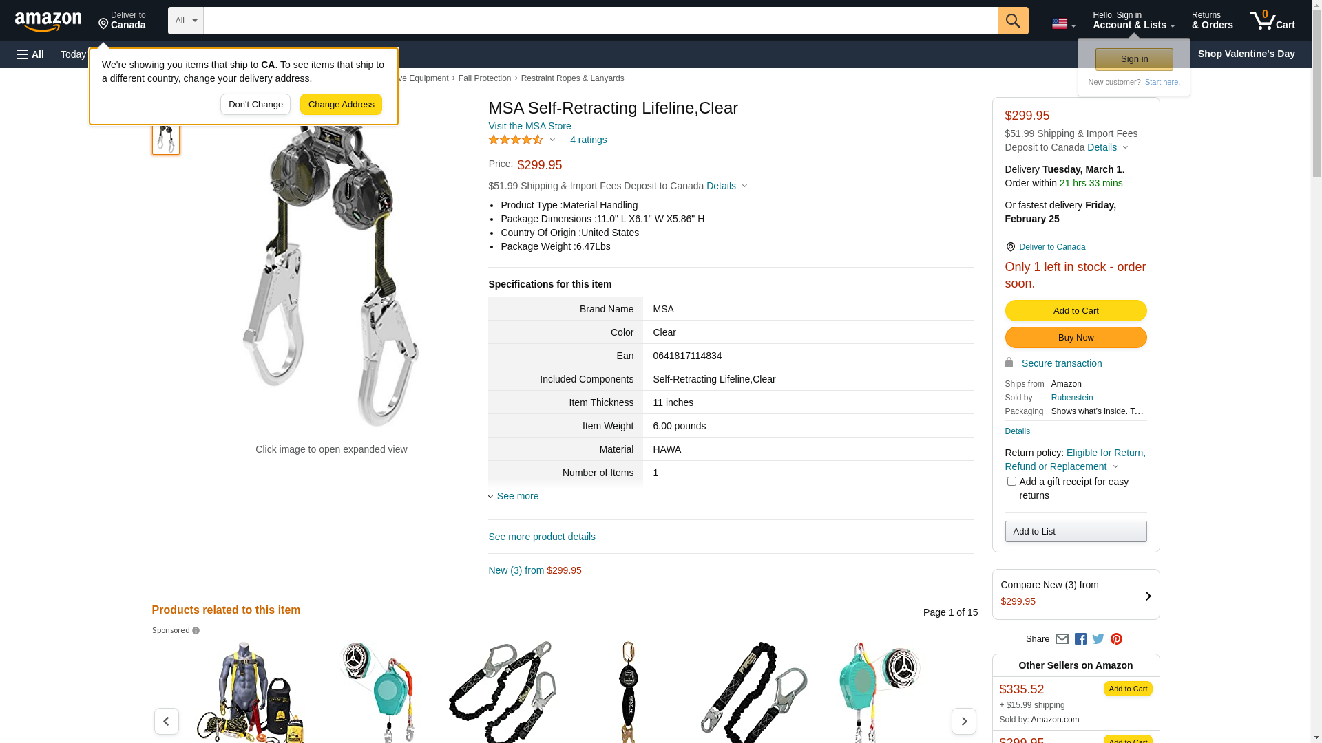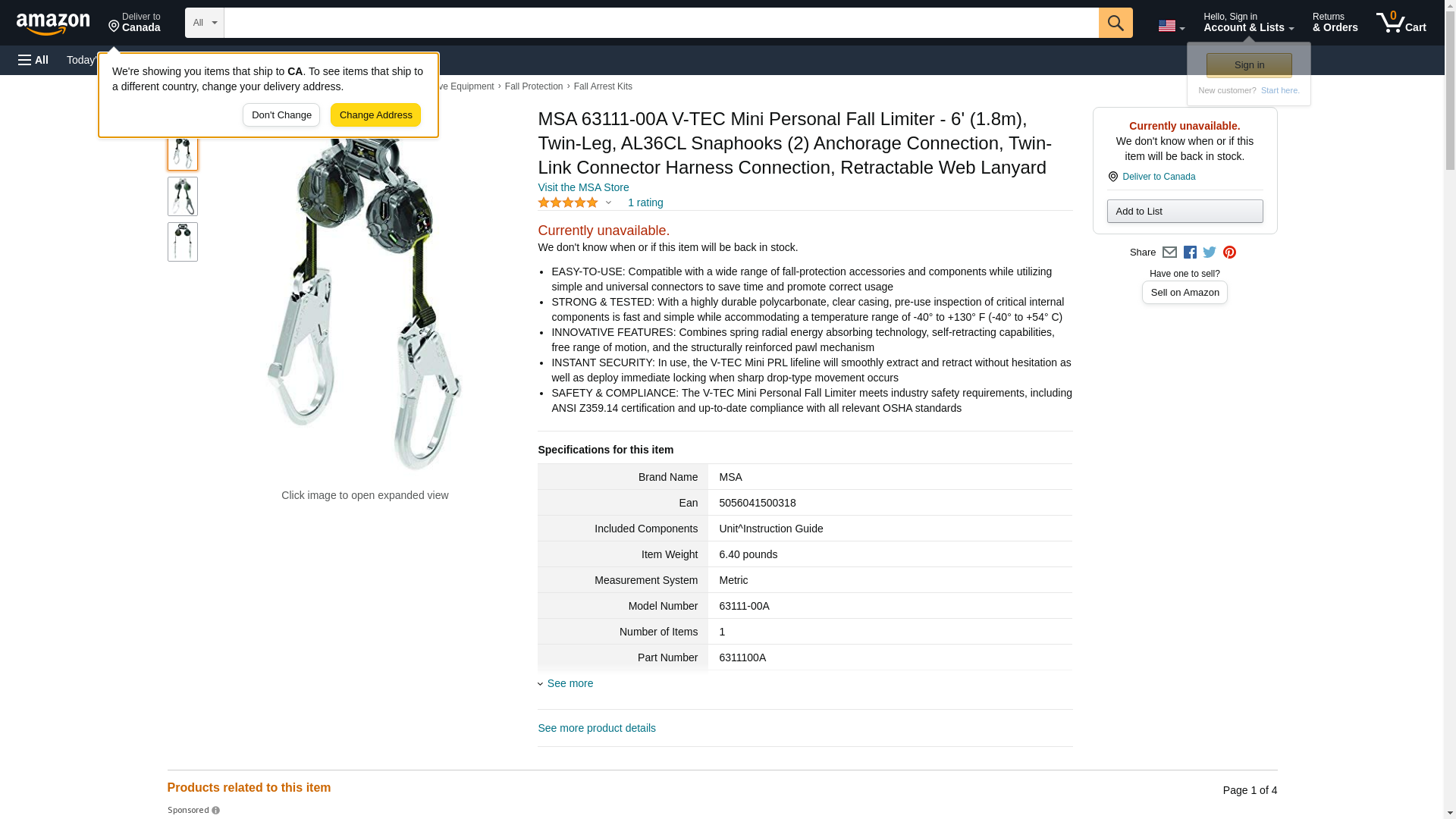 | Safety Equipment Store | MSA-63111-00A | 1 | -2 | 1 | 1 @ $583.38 |