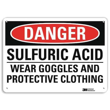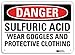 Danger Sign, Vertical Rectangle, Number of Printed Sides 1, English, Sign Format Traditional OSHA, Sign Legend Sulfuric Acid Wear Goggles And Protective Clothing, Sign Legend Background Color White, Sign Legend Style Text