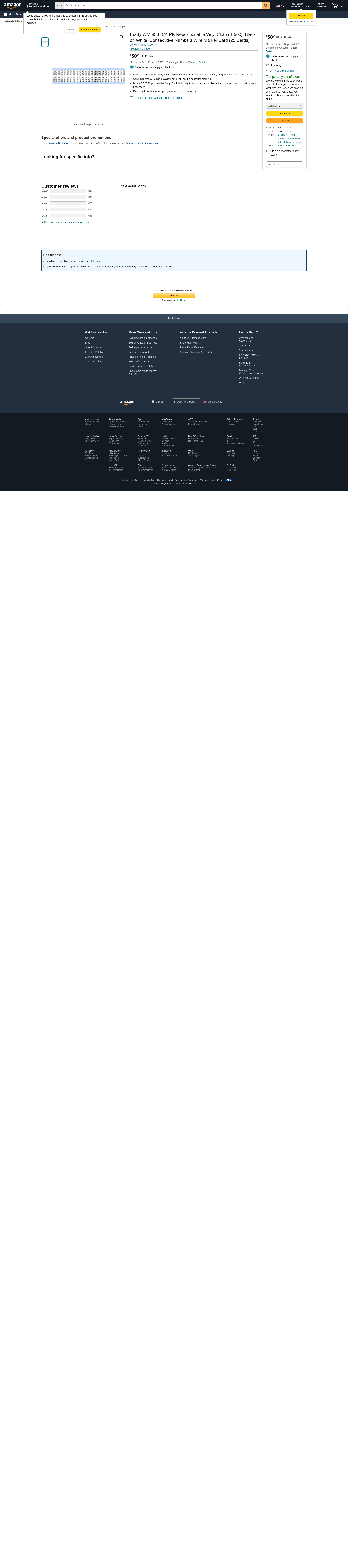 Brady Wm-850-874-Pk / Pack Of 25 Cards - WM-850-874-PK