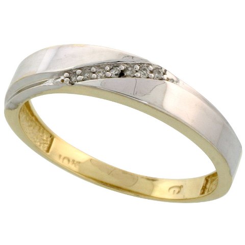 World Jewels 10K Yellow Gold Men 0.04 CT. Brilliant Cut Diamond Wedding Band Ring, Size 12.5