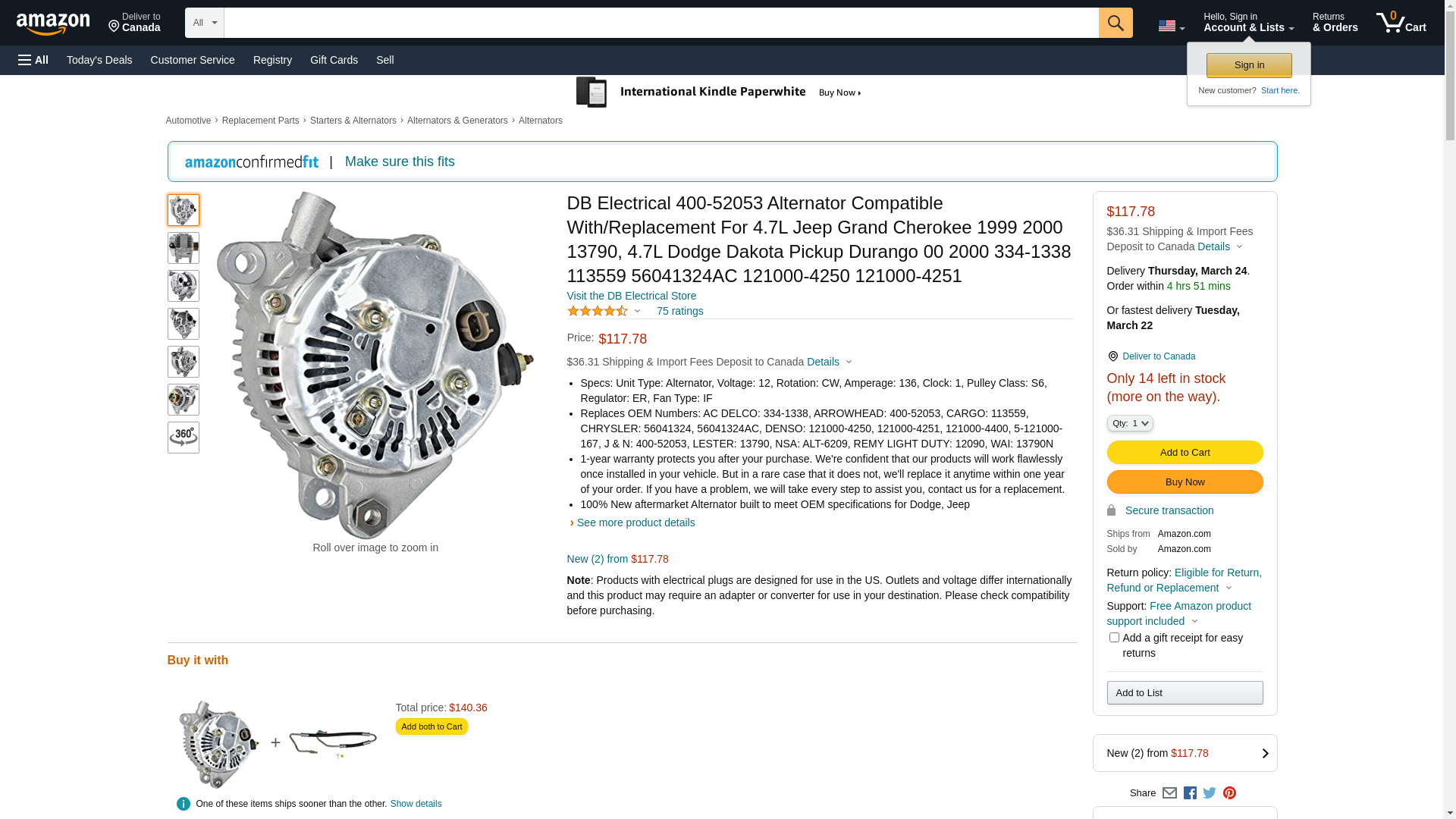 DB Electrical 400-52053 Alternator Compatible With/Replacement For 4.7L Jeep Grand Cherokee 1999 2000 13790, 4.7L Dodge Dakota Pickup Durango 00 2000 334-1338 113559 56041324AC 121000-4250 121000-4251