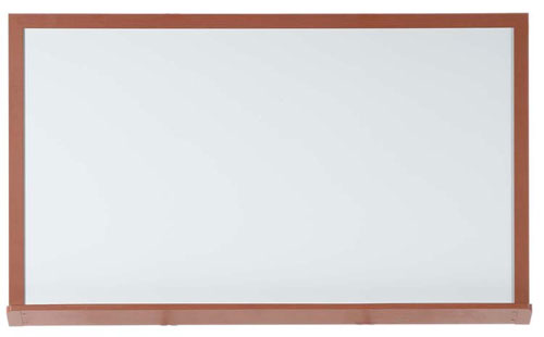 Aarco High Performance Cherry Wood Look Magnetic Markerboard 144"W x 48"H Architectural High Performance Porcelain Marker Board with Wood Look Finish trim. The Porcelain Writing surface is indestructible when used as directed and guaranteed for life. The high contrast board allows for smooth marker lines, excellent erasing qualities and permits the use of magnetic accessories. The board has an Aluminum Foil backing providing a moisture barrier. The trim has a Wood Look finish which is a unique powder coated process that combine the warm rich appearance of natural hardwood with the rugged and enduring qualities of extruded aluminum and features a full length box marker tray with molded end caps for safety. Mounting hardware is provided. Trim Color Cherry, Board is High Gloss V3. 144"Wx48"H Aarco 420WD48144 High Performance Series Cherry Wood Look Aluminum Frame Trim Porcelain V3 Magnetic Markerboard