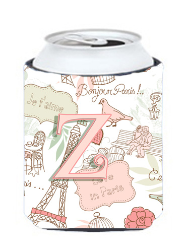 Caroline's Treasures CJ2002-ZCC Letter Z Love in Paris Pink Can or Bottle Hugger Cooler Washable Drink Sleeve Collapsible Beverage Insulated Holder, Can Hugger, Multicolor