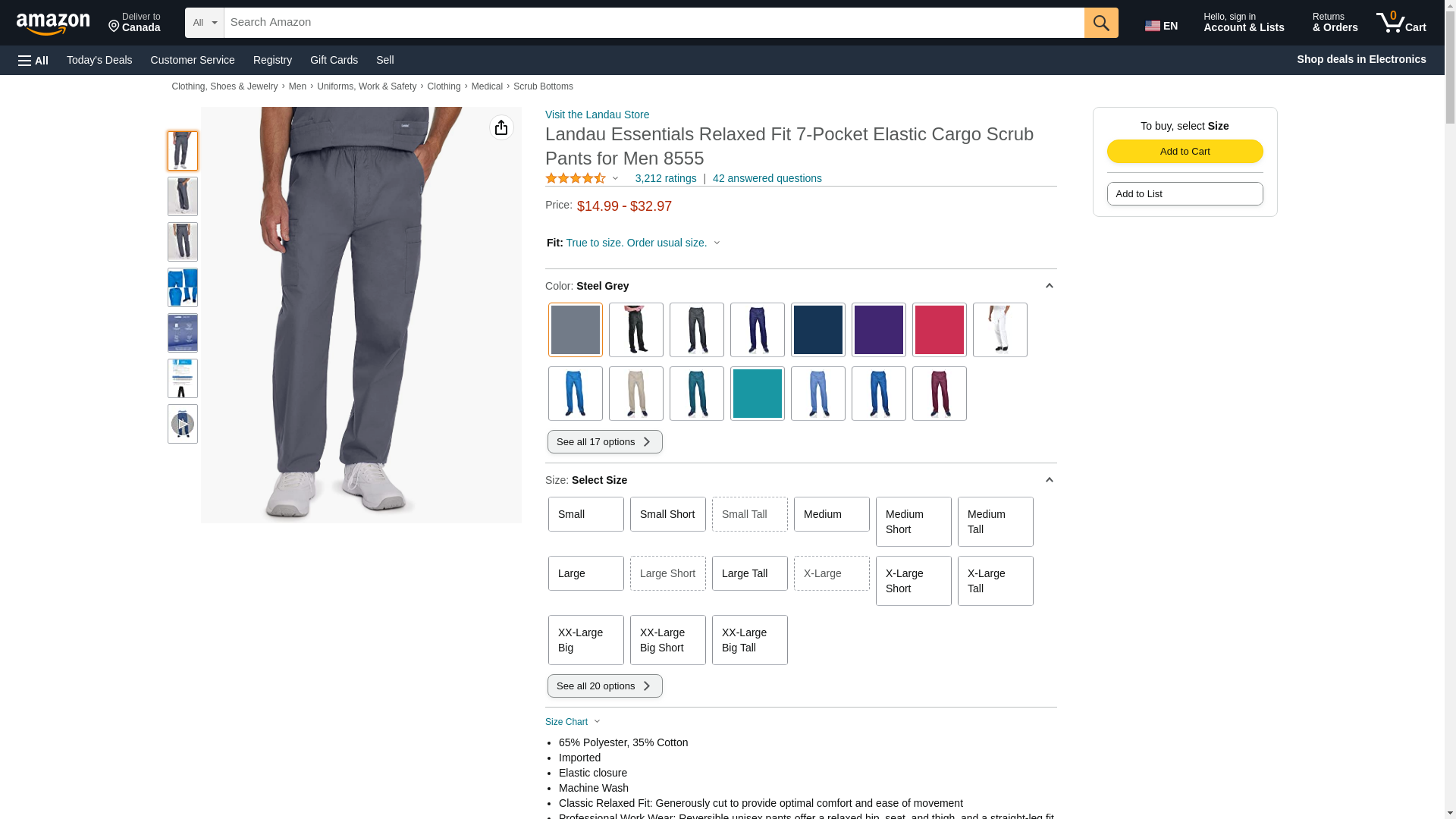 Landau Essentials Relaxed Fit 7-Pocket Elastic Cargo Scrub Pants for Men 8555
