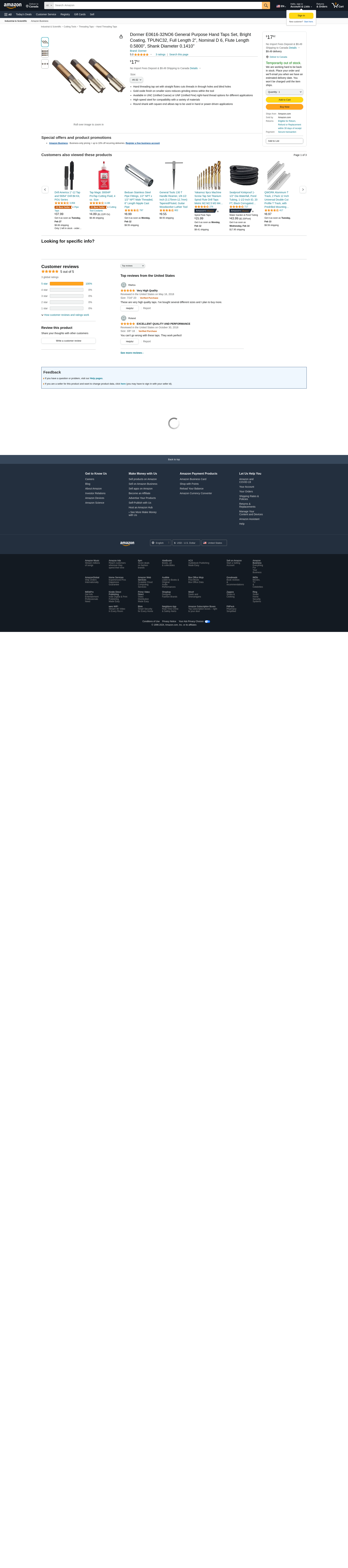 Dormer E0616-32NO6 General Purpose Hand Taps Set, Bright Coating, TPUNC32, Full Length 2", Nominal D 6, Flute Length 0.5800", Shank Diameter 0.1410"
