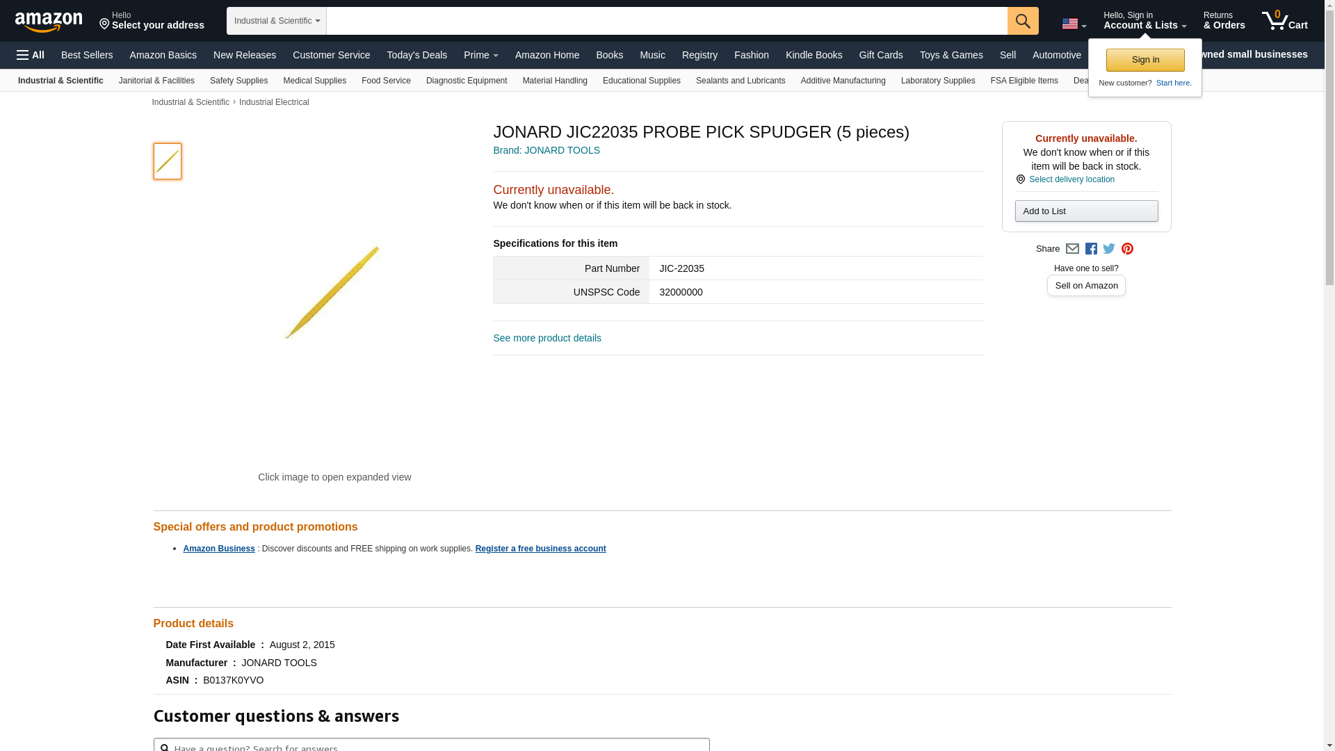 JONARD JIC22035 PROBE PICK SPUDGER (10 pieces)