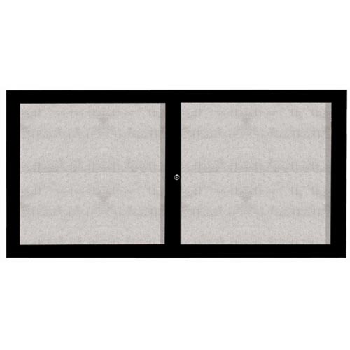 Aarco ODCC3672RIBK 36" x 72" Enclosed Hinged Locking 2 Door Powder Coated Black Outdoor Lighted Bulletin Board Cabinet