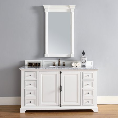 James Martin 238-105-V60S-CWH-2DSC Providence 60" Cottage White Single Vanity with Santa Cecilia Stone Top w/ Oval Sink