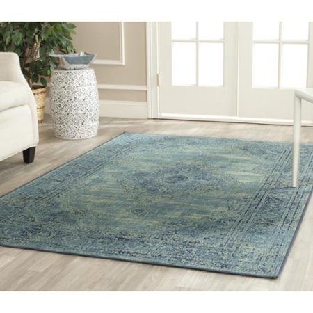 A subtle Oriental design and a rich turquoise hue make this Safavieh viscose area rug the focal point of your living space. The large rug covers plenty of floor area, adding warmth and comfort to your home. With a low pile height of just .375 inches, this viscose area rug is especially perfect for placement underneath furnishings. <br /> <br /> <ul> <li>Primary materials: Viscose</li> <li>Latex: No</li> <li>Pile height: 0.375 inches</li> <li>Style: Vintage</li> <li>Primary color: Blue</li> <li>Pattern: Oriental</li> </ul> <br /> <b>Tip: We recommend the use of a <a href="http:" www.overstock.com="" ome-garden="" ug-pads="" 285="" ubcat.html=""> <u>non-skid pad</u></a> to keep the rug in place on smooth surfaces.</b> <br /> <br /> <i>All rug sizes are approximate. Due to the difference of monitor colors, some rug colors may vary slightly. We try to represent all rug colors accurately. Please refer to the text above for a description of the colors shown in the photo.</i> <br />