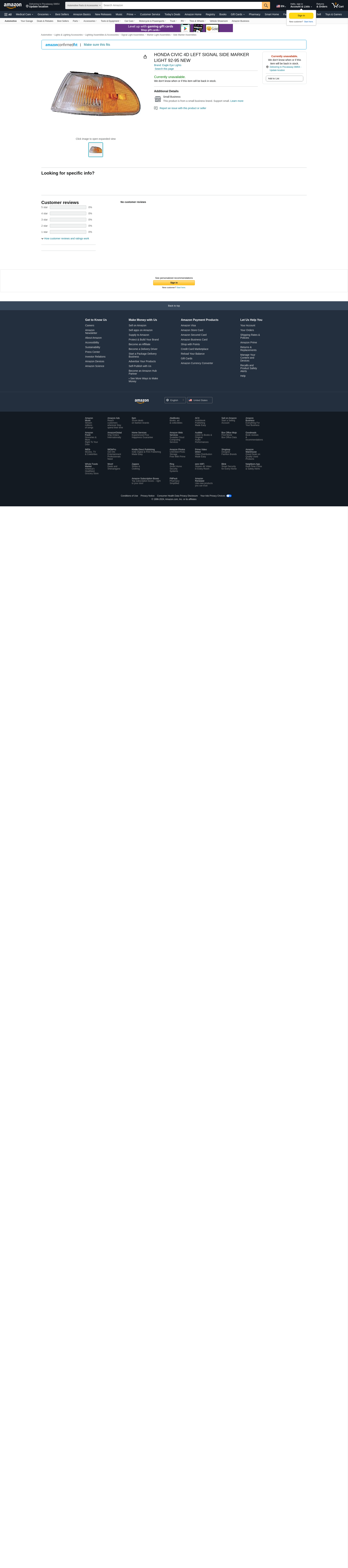 HONDA CIVIC 4D LEFT SIGNAL SIDE MARKER LIGHT 92-95 NEW