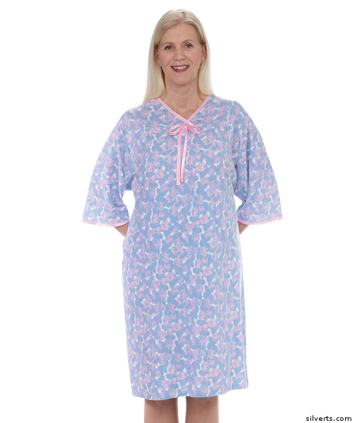 Silverts 260003004 Womens Hospital Soft Cotton Knit Adaptive Pattern Night Gown, Blue Desert - Extra Large