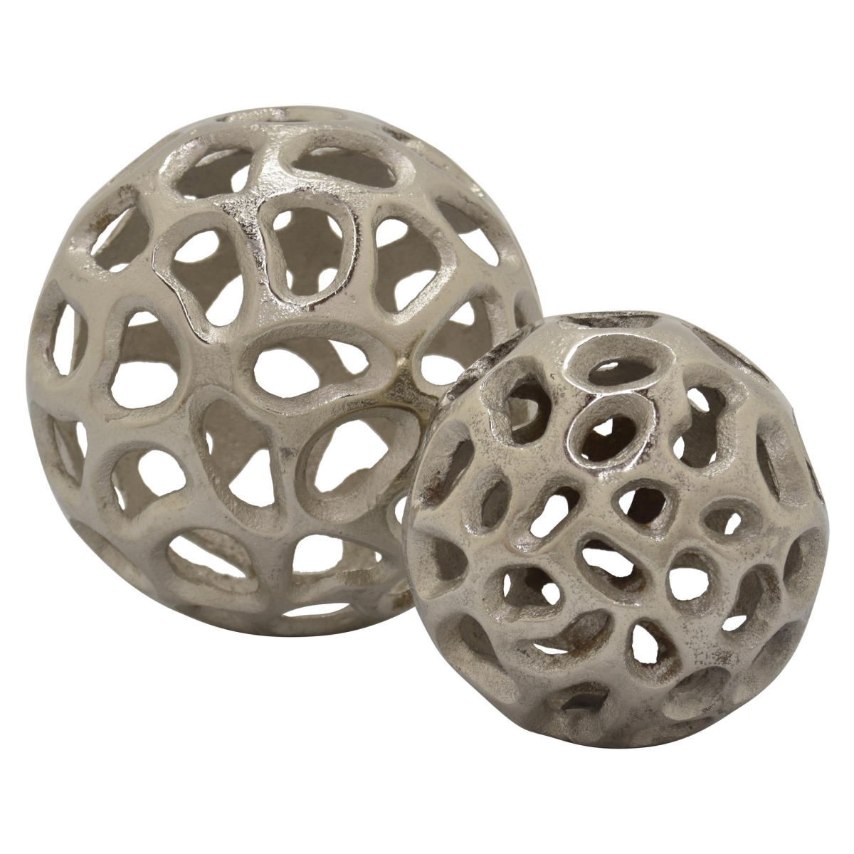 Plutus Brands PBTH93534 Orb Sphere Silver Sculptures in Silver, Metal - Set of 2