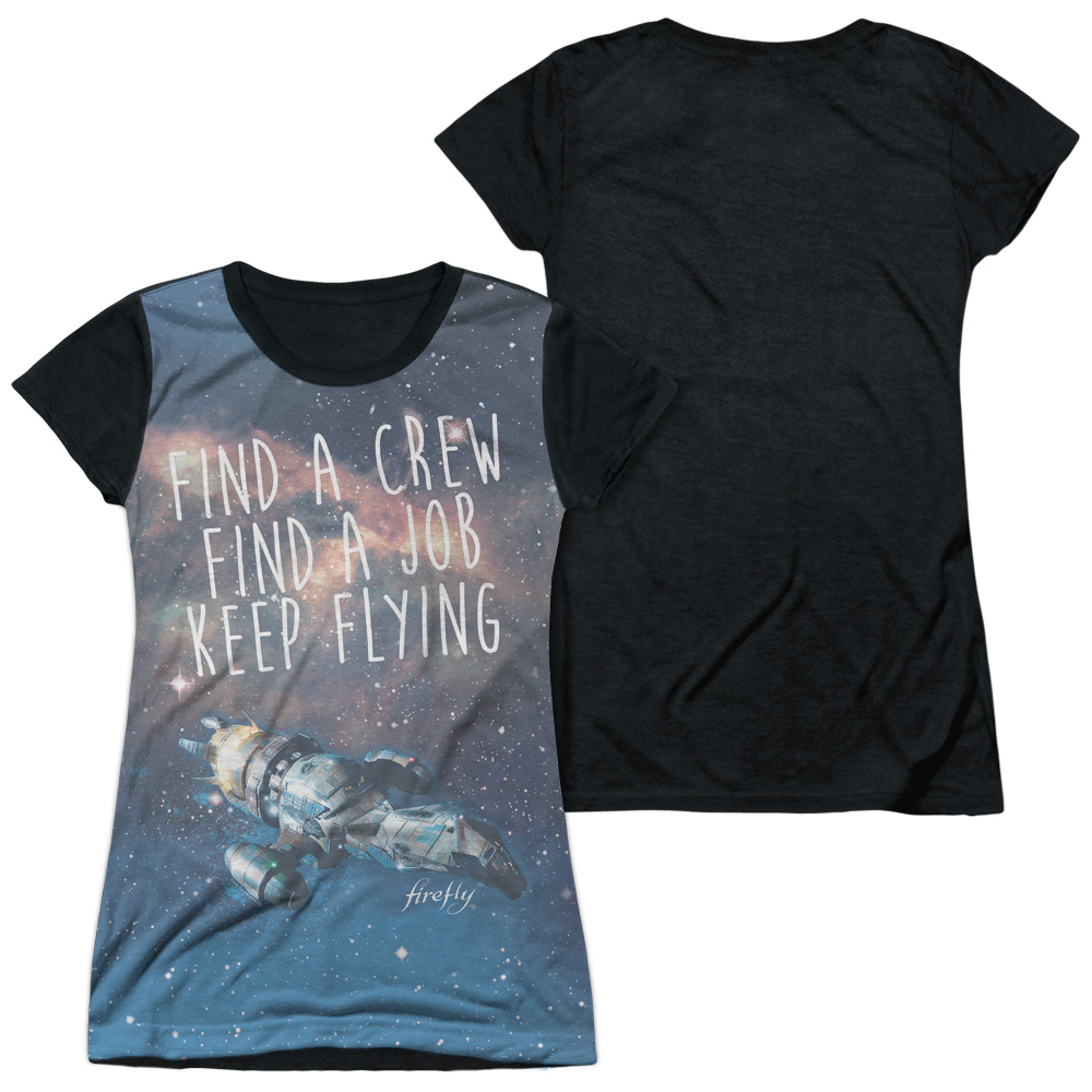 Trevco TCF489-JSBB-5 Firefly & Keep Flying Junior Polyster Black Back Cap Sleeve T-Shirt, White - 2X