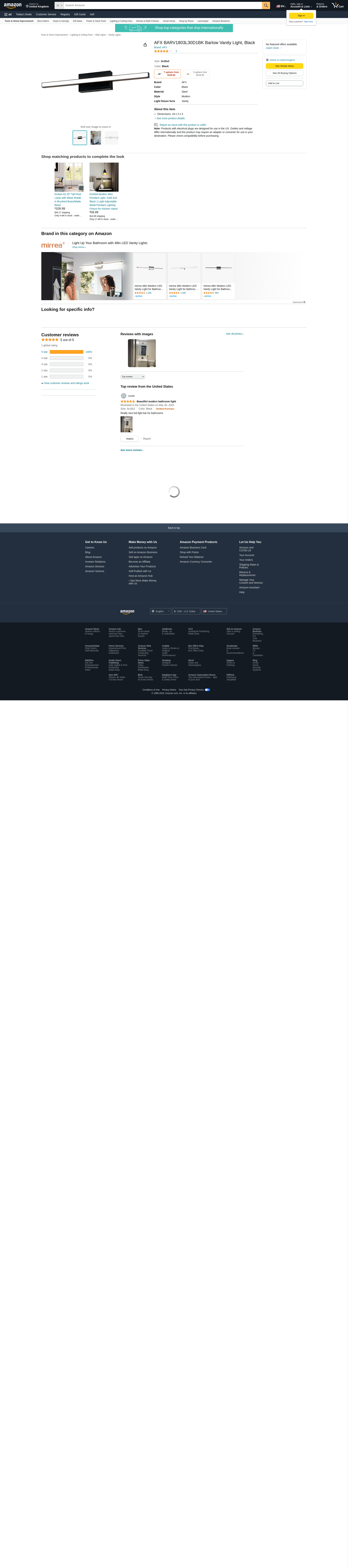 AFX BARV1803L30D1BK Barlow Vanity Light, Black
