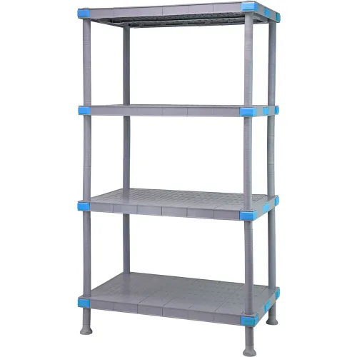 - Category: Shelving Unit, All Plastic; Material: Polypropylene/ABS; Color: Gray