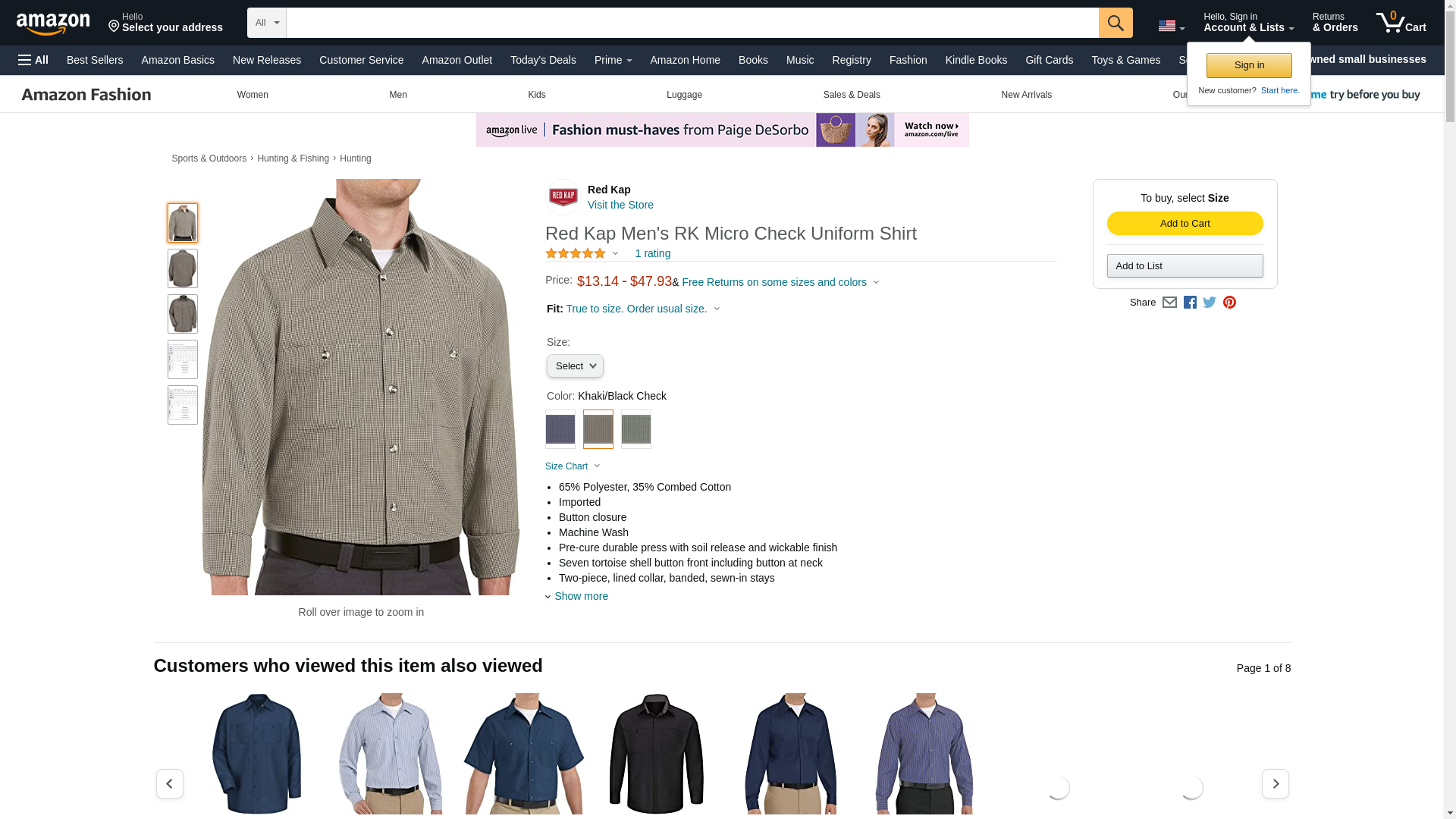 "Red Kap Men's Micro-Check Uniform Shirt, Khaki/Black Check, 3X-Large"