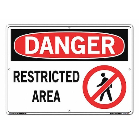 Vestil SI-D-22-E-AL-063 RESTRICTED AREA Danger Sign, Aluminum, 0.063" Overall Size, 20.5" W x 14.5" H