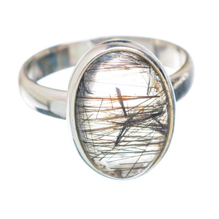 Tourmalinated Quartz 925 Sterling Silver Ring Size 8.5 - Handmade Jewelry RING877672