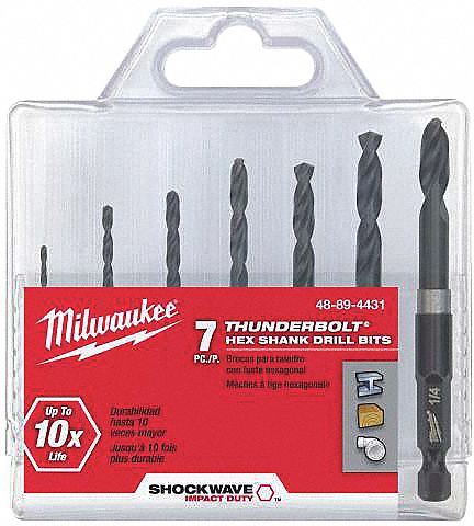 7/32" Shockwave Impact Hex Drill Bit Milwaukee shockwave impact duty 1/4" hex drive drill bits are engineered for extreme durability and up to 10x life. Made from proprietary steel and heat treated to control hardness, the shockwave impact duty hex drive drill bits feature the Milwaukee thunderbolt web for durability and chip removal paired with taper-fit construction for a stronger bit with less wobble. The bits include a 135° split point to allow the bit to start on contact and eliminates walking. Broadly targeting cordless users, the shockwave impact duty accessory line is not only ideal for heavy duty impact applications, but delivers a full system solution for all the user's drilling and fastening needs. Features: 7/32" Diameter Steel Construction Since its founding in 1924, Milwaukee has focused on a single vision: To produce the best heavy-duty electric power tools and accessories available to the professional user. Today, the Milwaukee name stands for the highest quality, durable and reliable professional tools money can buy.
