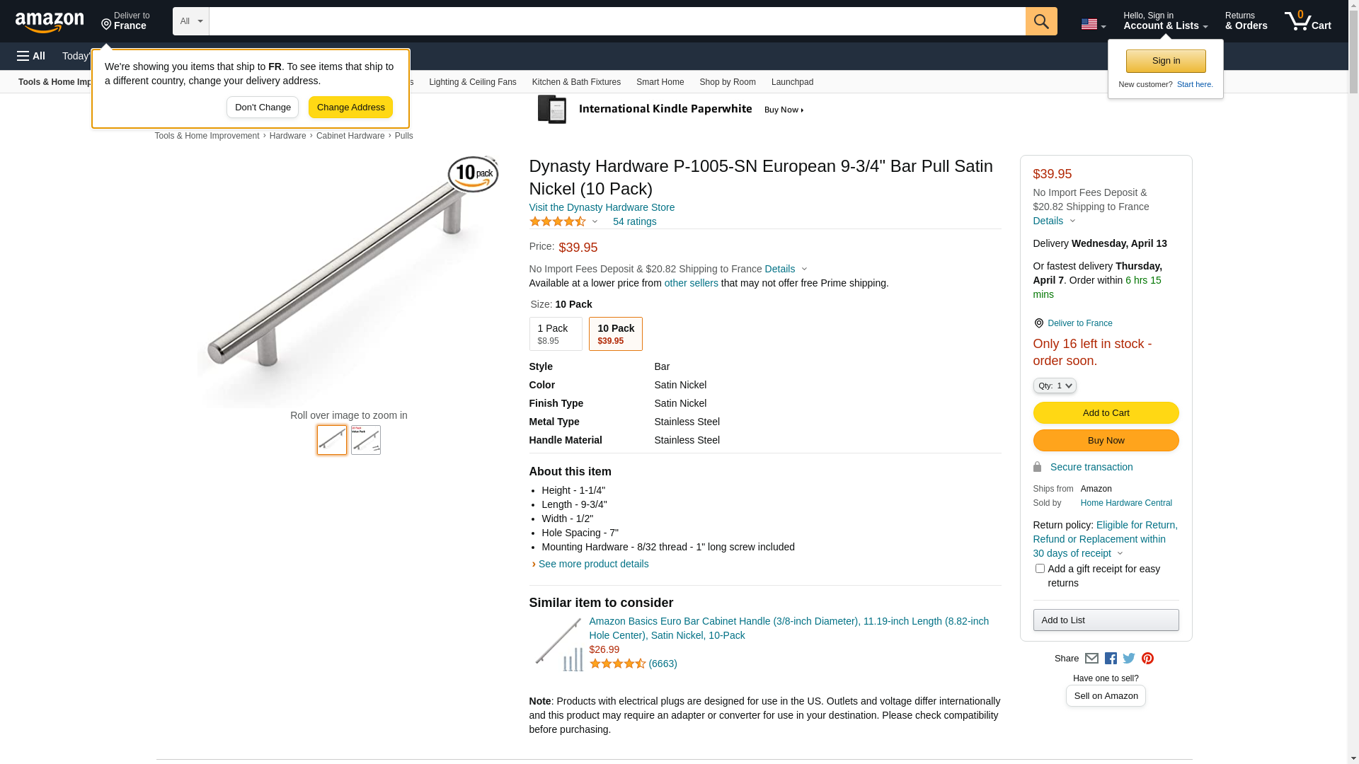 Dynasty Hardware P-1005-SN European 9-3/4" Bar Pull Satin Nickel (1 Pack)