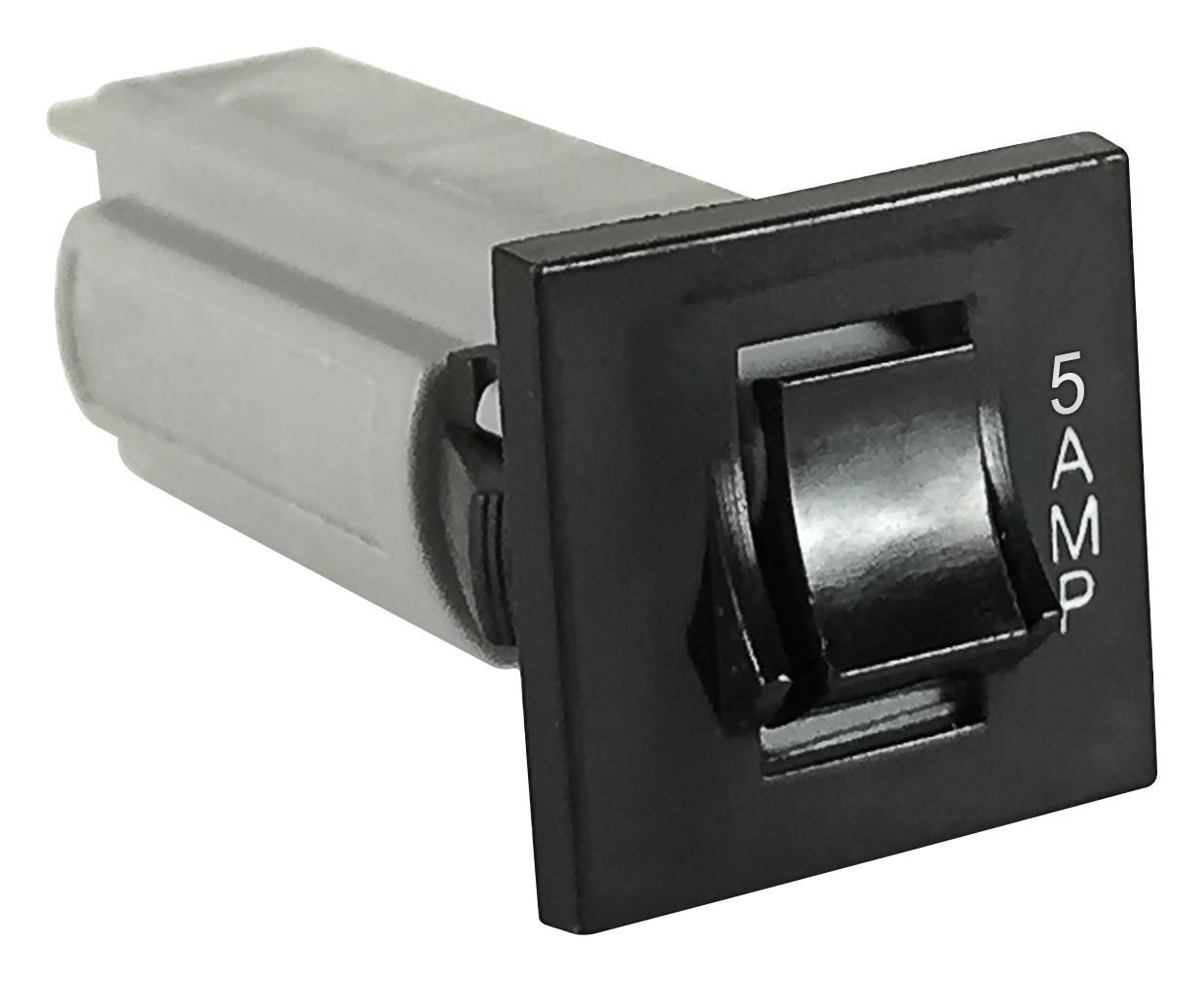 'Circuit Breaker, Thermal, Switch Type Rocker, Curve Type Medium, Number of Poles 1, Amps 5, AC Voltage Rating 250VAC, DC Voltage Rating 50VDC, Max. AIR Rating Not Rated, AIR @ 120VAC Not Rated, AIR @ 125VDC Not Rated, AIR @ 240VAC 1.0kA, AIR @ 65VDC Not Rated, Phase 1, Terminal Connection 1/4 In. Tab, Max. Wire Size 14 AWG, Length 0.76 In., Width 0.76 In., Depth 2.23 In., Standards UL/CSA/cUL/VDE/CE, Mounting Type Snap-In Bezel'