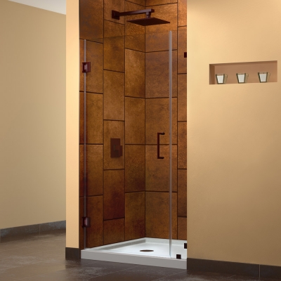 DreamLine UnidoorLux 30" Frameless Hinged Shower Door, Clear 3/8" Glass Door, Oil Rubbed Bronze Finish Hardware
