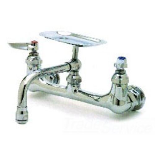 T&S Brass B-0233-02 Double Pantry Faucet, Wall Mount, 8" Centers, 8" Swing Nozzle with Soap Dish