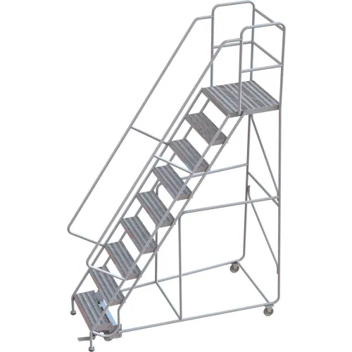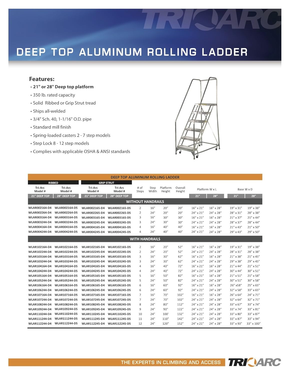 Tri Arc Mfg 9 Step Aluminum Rolling Ladder, 24"W Ribbed Tread, 21"D Top Step, 32" Handrails