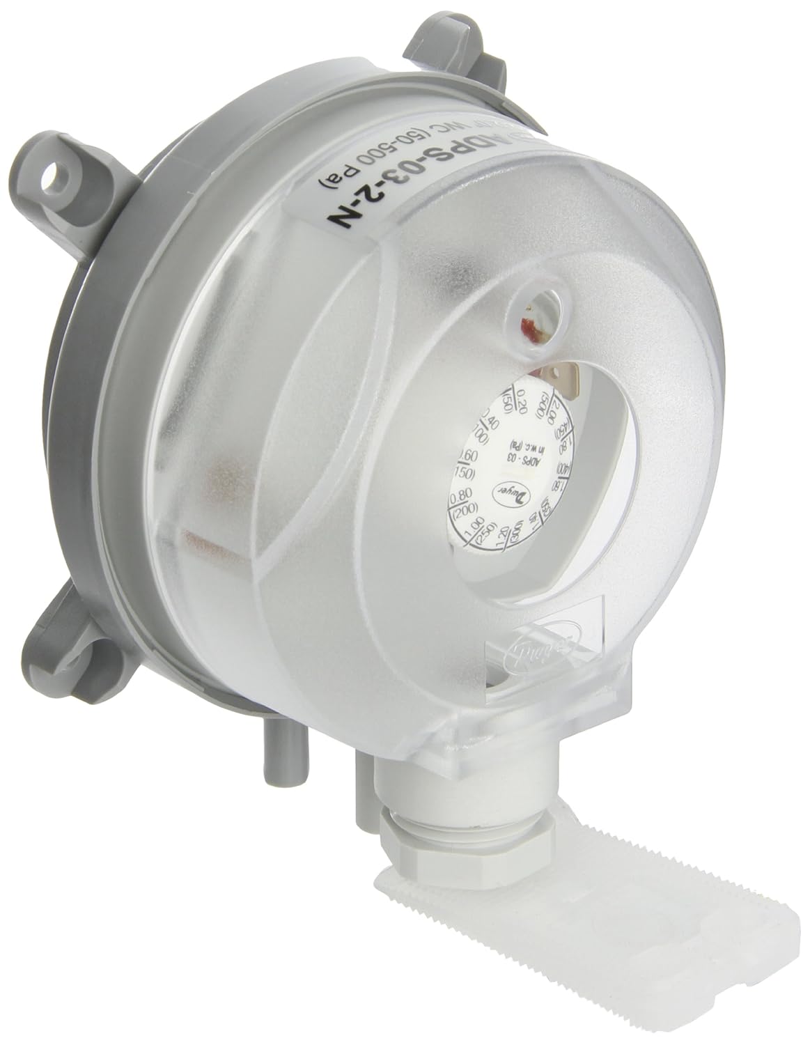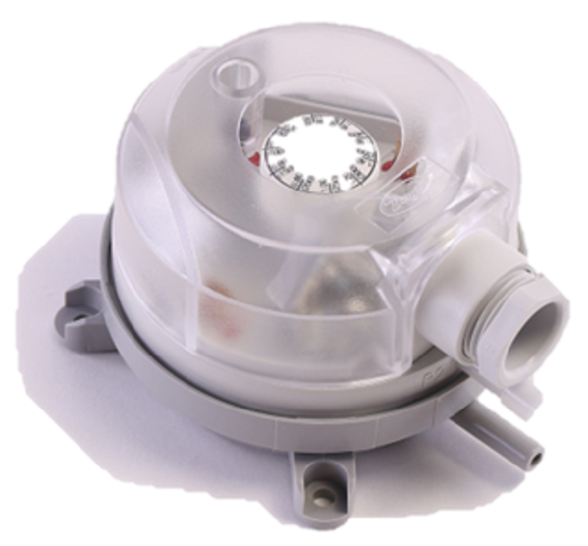 Pressure Switch, Differential, 0.2 to 2.0 In WC Differential, Burst Pressure 40 In WC, Port Type 1/4 In Slip On Fitting, Diaphragm Actuation Type, Single Phase, SPDT Contact Type, 1.5 Amps, NEMA 13, IP54 Enclosure, Temp Range -4 to 185 F, Standards CE