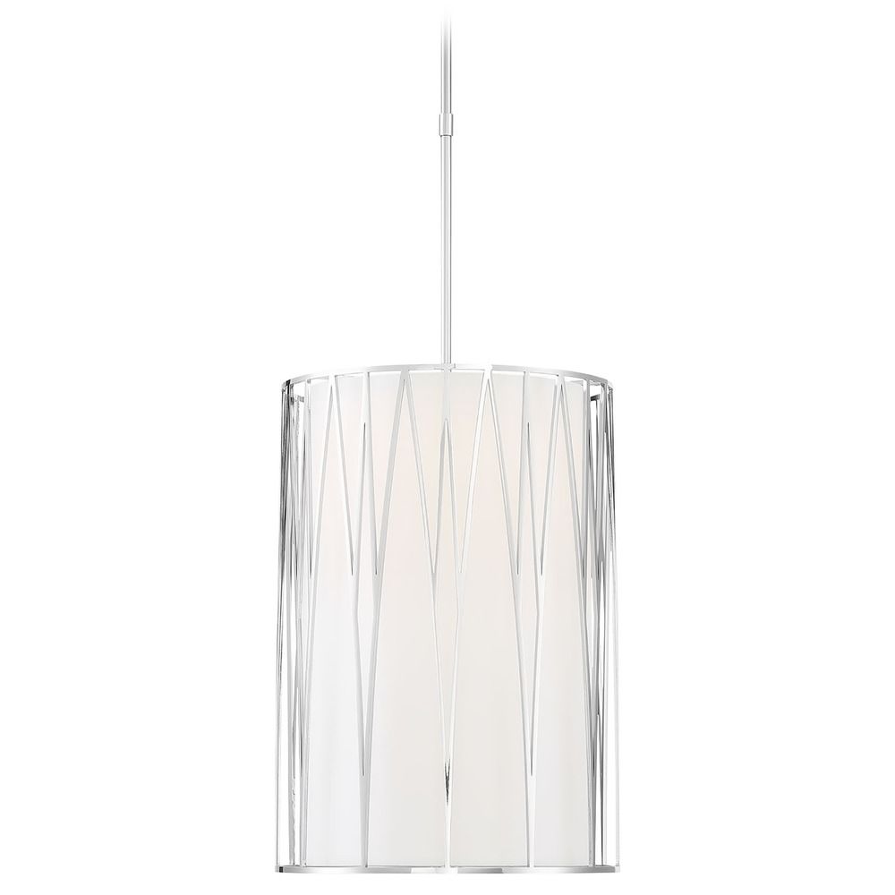 Minka Lavery 1081-613-L Regal Terrace Metal Frame/Cloth Cylinder LED Pendant, 1-Light 30 Watt, 32" H x 14" W, Polished Nickel