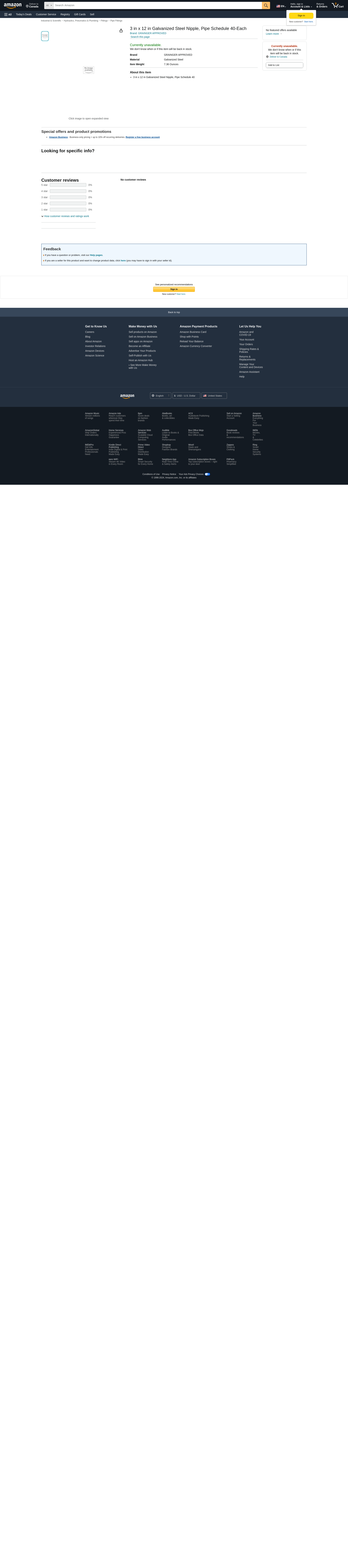 - 3 in x 12 in Galvanized Steel Nipple, Pipe Schedule 40