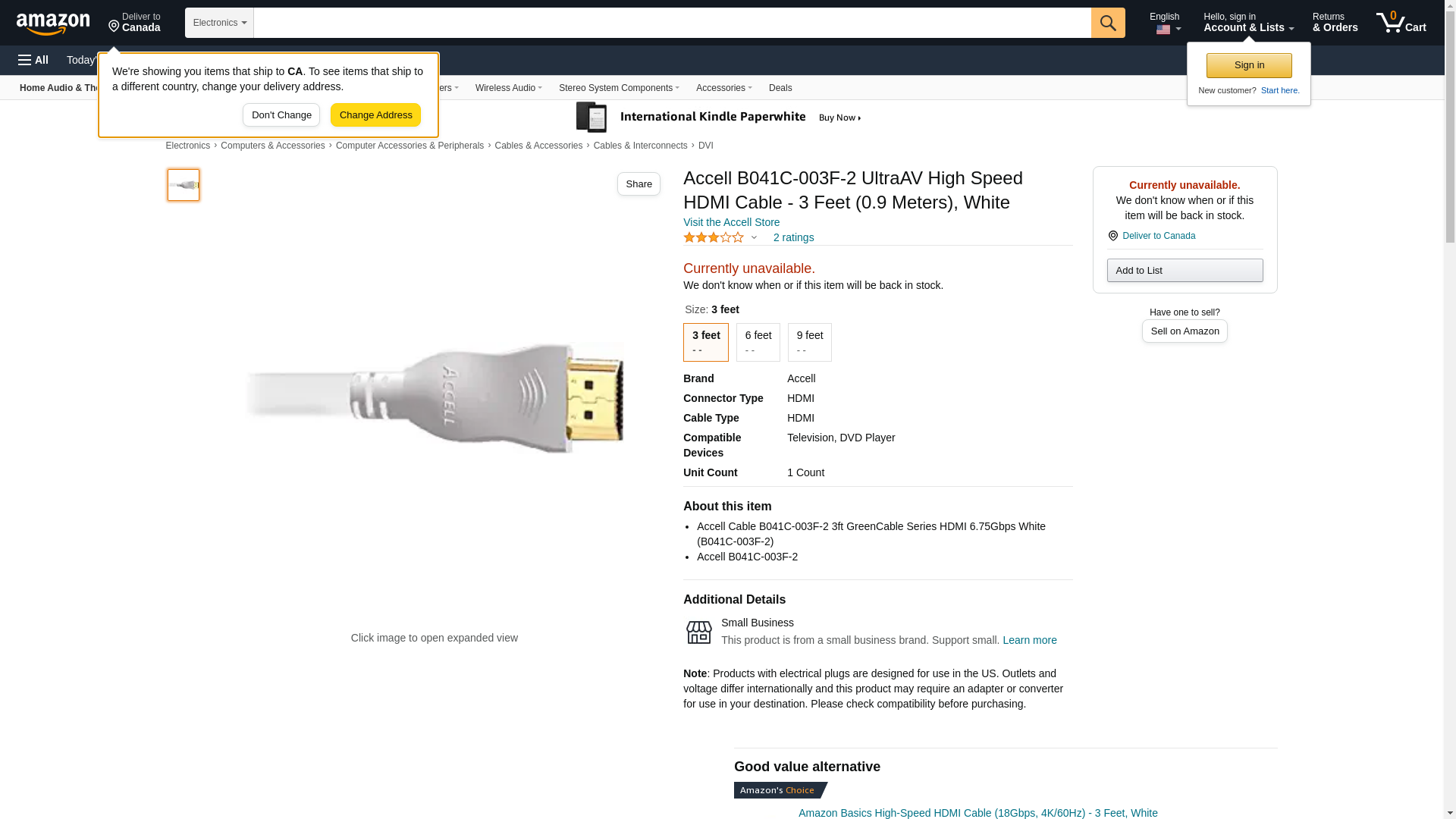 Accell B041C-003F-2 UltraAV High Speed HDMI Cable - 3 Feet (0.9 Meters), White